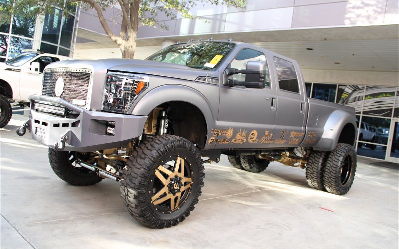Some people don’t like to see Lifted Dually Trucks, but we Love them! You have seen the crazy amount of Lifted SEMA Trucks but this time we are showing you just the Lifted Dually Trucks. Whether is was a Ford, Chevy, or a Dodge all of the Big 3 were represented well at the 2016 Sema Show in Las Vegas, Nevada. Cummins, Duramax, and Powerstroke Diesel powered trucks were everywhere.
